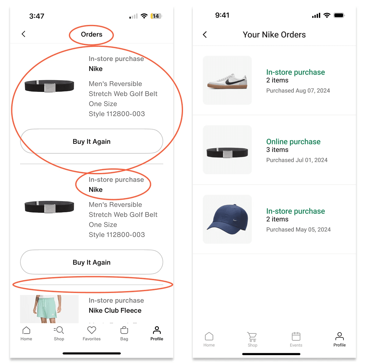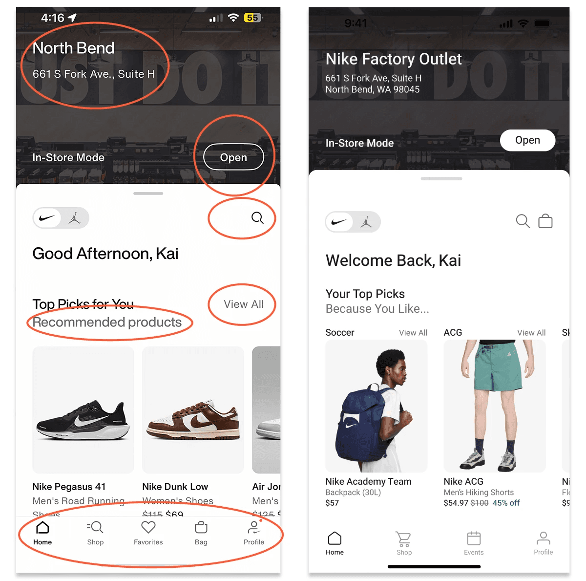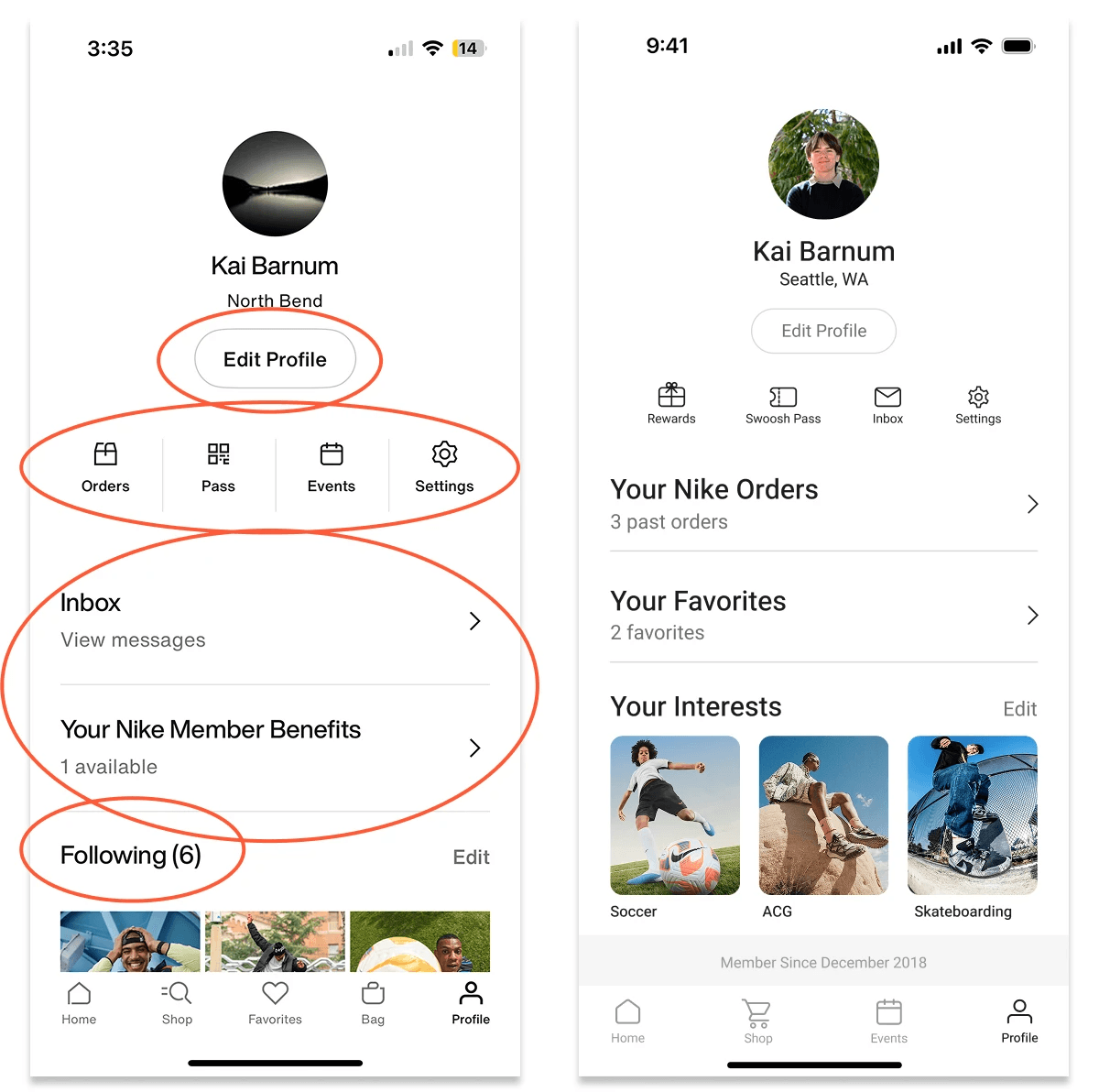 The 'Edit Profile' button was bold and high up in the visual hierarchy, despite most users looking for their orders or Nike Pass while in the store.